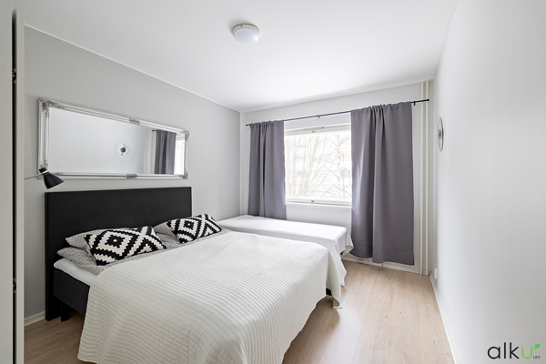 Kodissa on kaksi tilavaa makuuhuonetta, joissa runsaasti kaappitilaa. Vaaleat pinnat antavat tilaa suurista ikkunoista sisään tulevalle luonnonvalolle! Entisestä keittiöstä tehty toinen makuuhuone 2023.