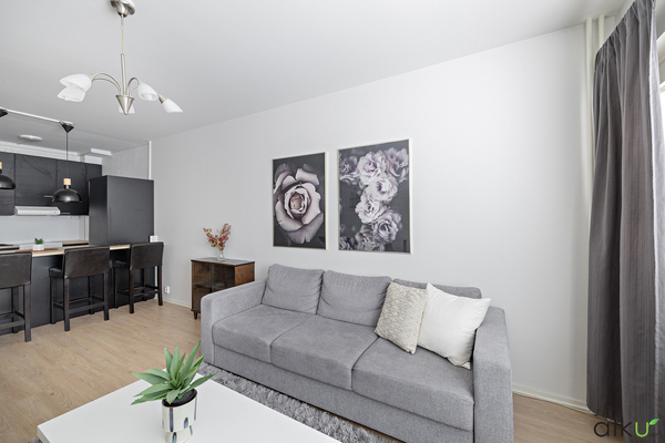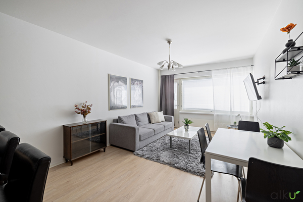 Avarassa olohuoneessa on tilaa perheen yhteisiin hetkiin. Olohuoneesta on käynti lasitetulle, ihastuttavalle parvekkeelle!