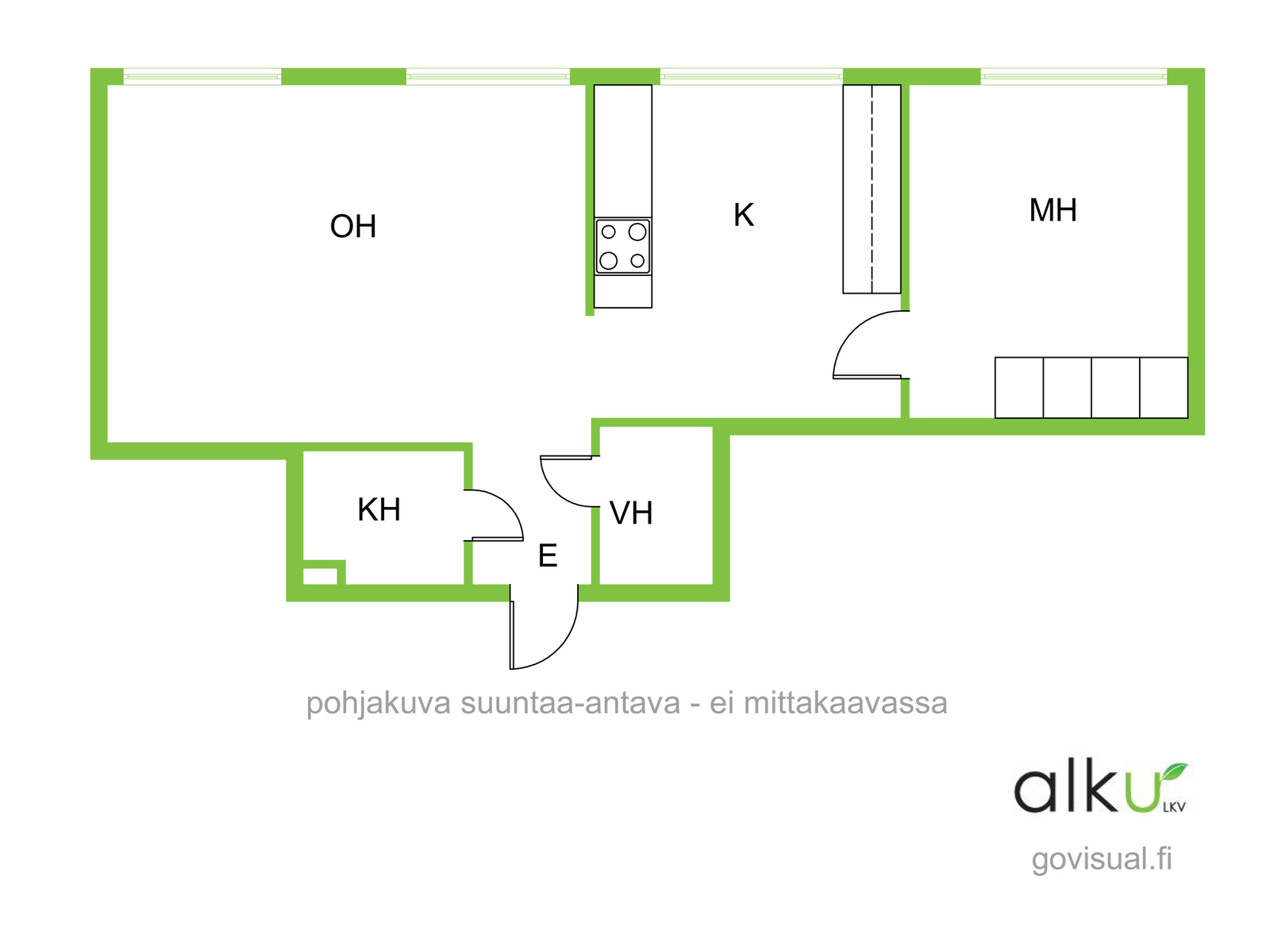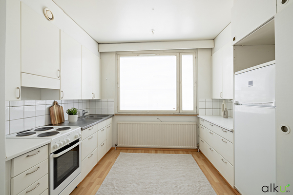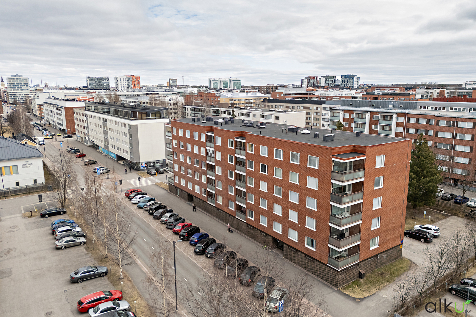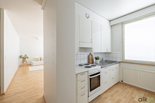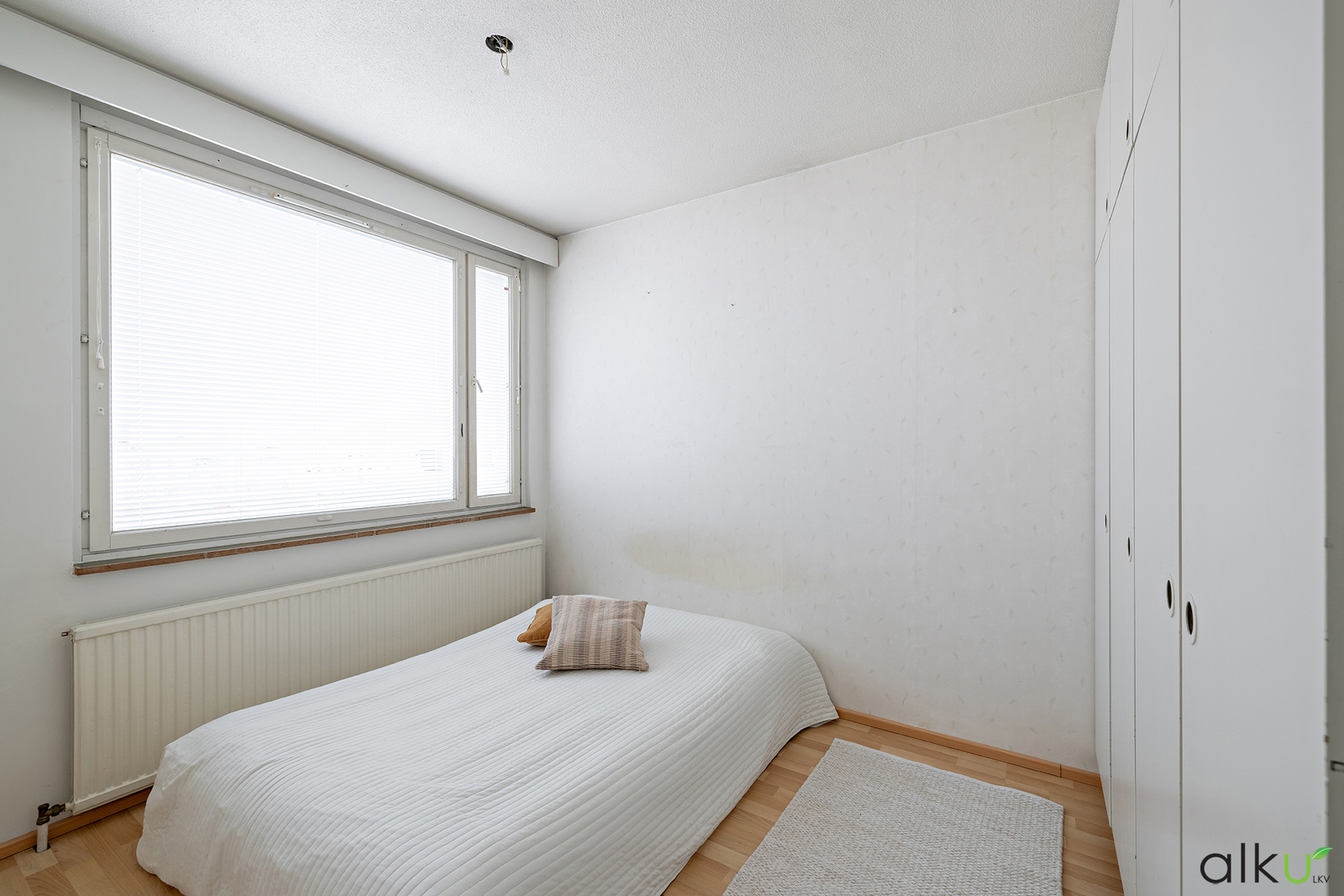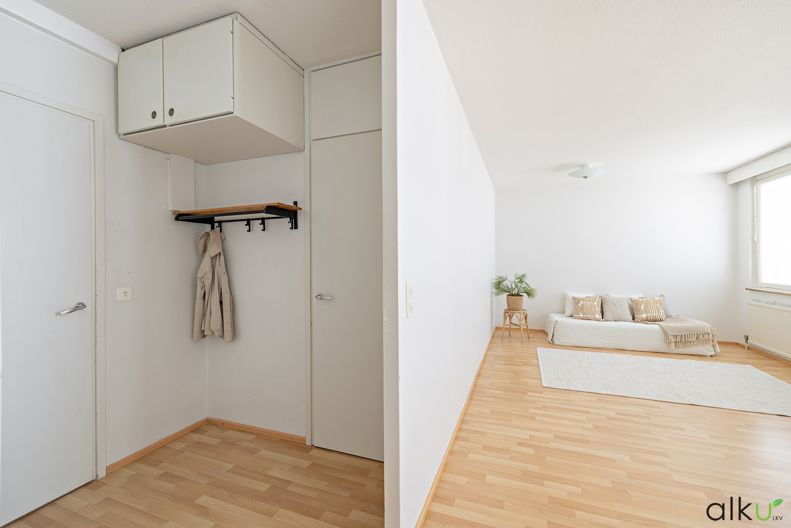 Ainutlaatuinen ylimmän kerroksen koti, jonka tiloja voi helposti muokata. Tilava olohuone, jonka yhteyteen saa loistavasti vaikkapa työtilan. Erillisessä keittiössä on hyvin kaappitilaa. Ikkunan äärellä oma paikka ruokailuryhmälle. Erillinen makuuhuone on hyvänkokoinen ja sen yhteydessä on hyvin kaapistoja säilytystarpeisiin. Kylpyhuoneen yhteydessä wc. Eteisestä on käynti myös hyvänkokoiseen vaatehuoneeseen.