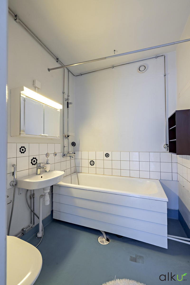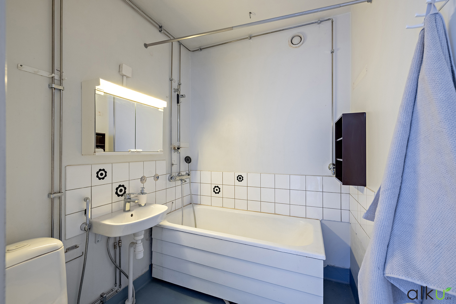Peruskuntoinen kylpyhuone ammeineen. Wc sijaitsee kylpyhuoneen yhteydessä. Kylpyhuoneen remontointi maksaa noin 10600e (tarjous voimassa vuoden 2025 loppuun)