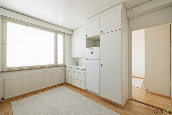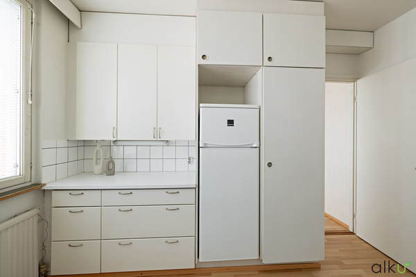 Keittiö on omana tilanaan, taso- ja kaappitilaa on reilusti.