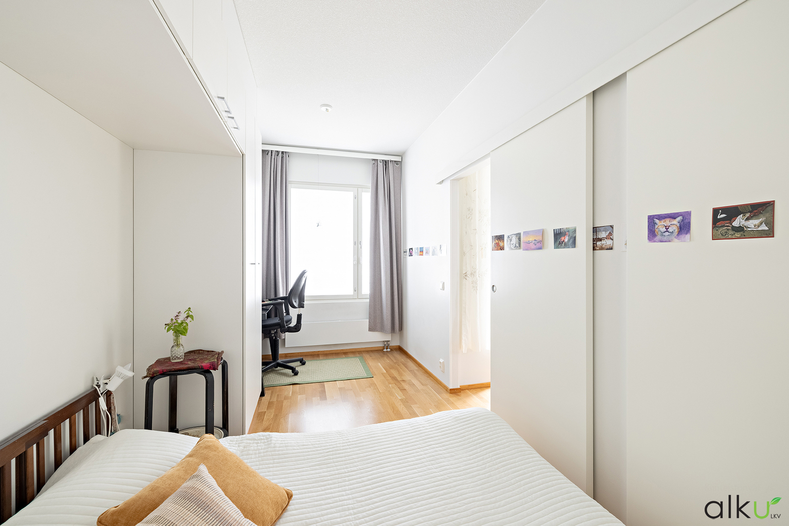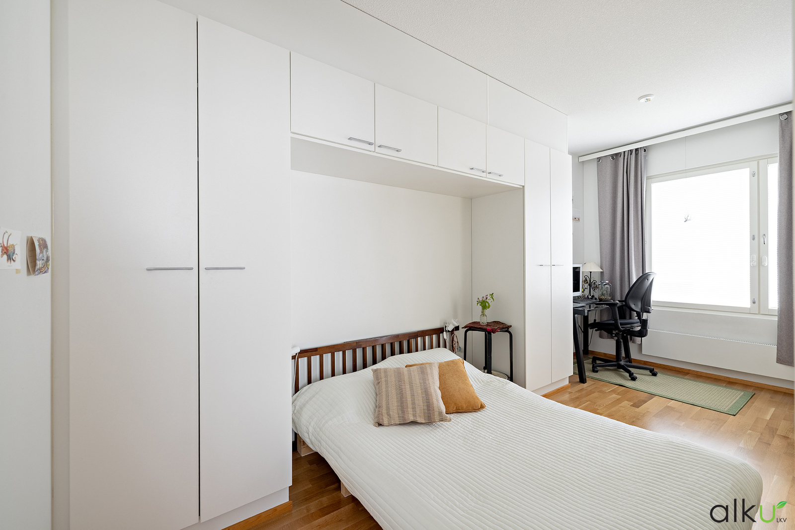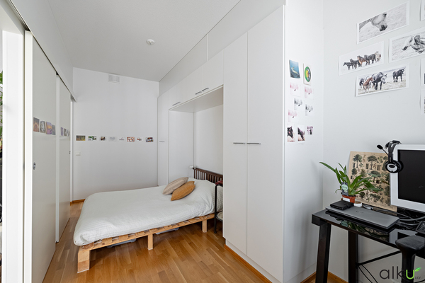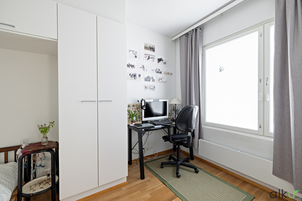 Makuuhuone on hyvän mallinen ja siellä on hyvin säilytystilaa. Makuuhuoneeseen sopii hyvin myös työtila.