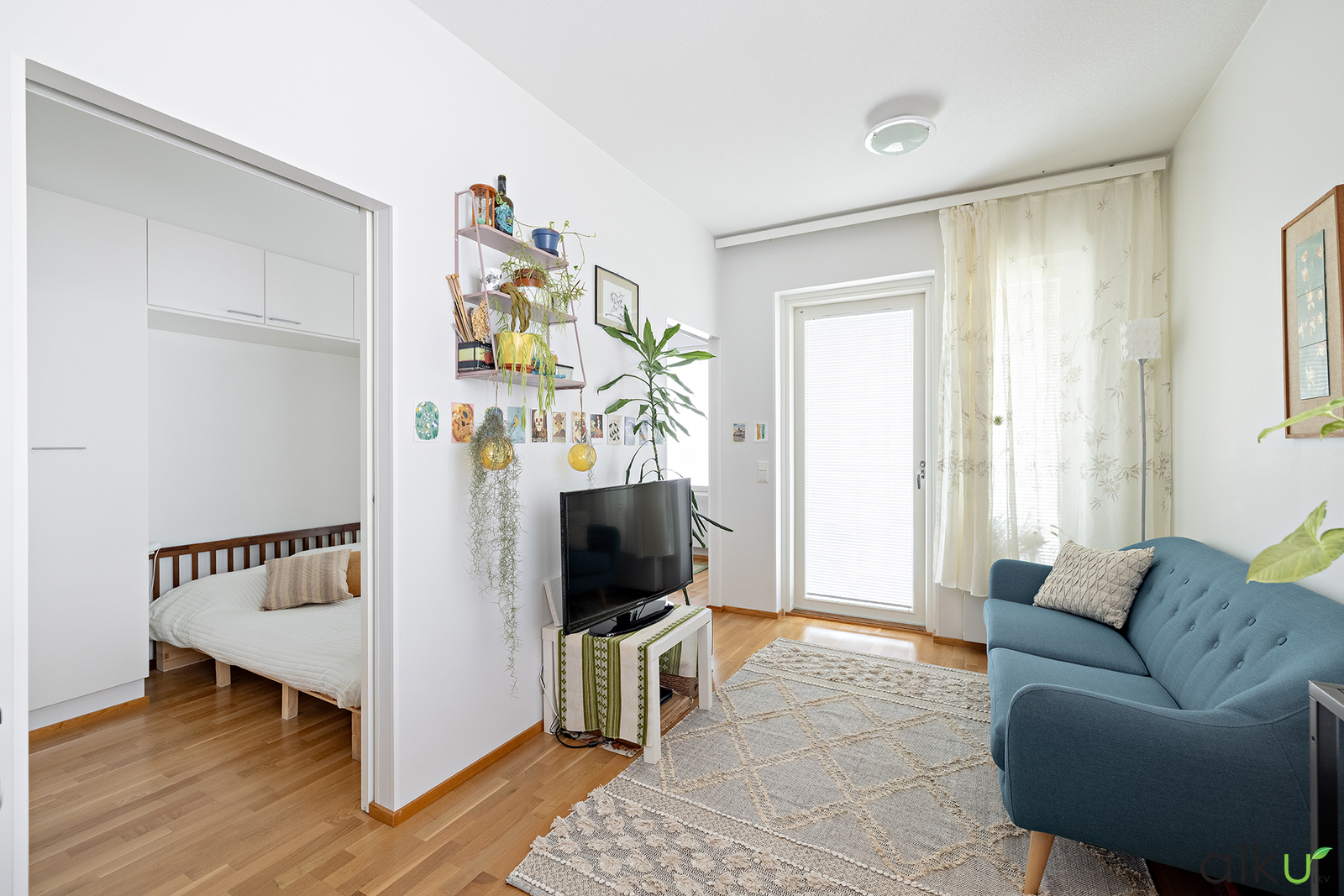 Olohuoneen vierellä on ihastuttava makuuhuone, jossa on ihana rentoutua ja levätä päivän kiireistä.