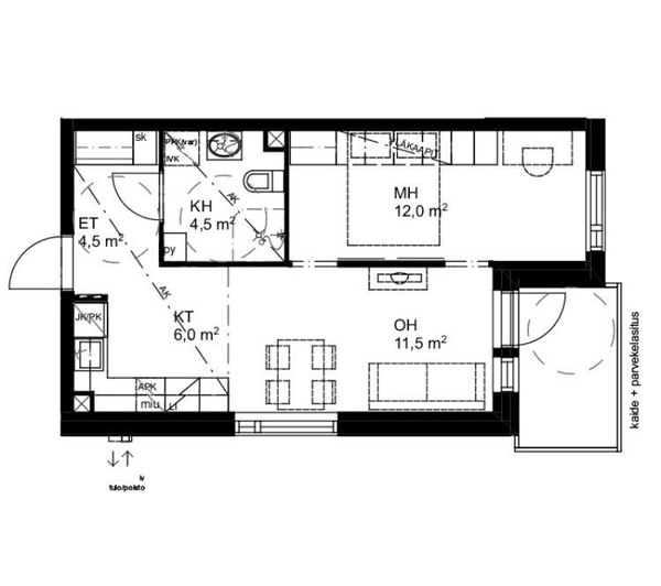 2h,k,kph/wc,lasitettu parveke