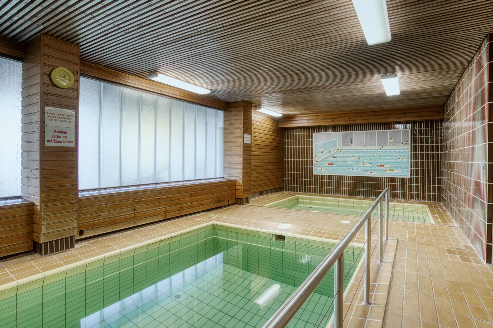 Taloyhtiön kellaritiloista löytyy upea uima-allasosasto, joka tekee arjestakin juhlaa.