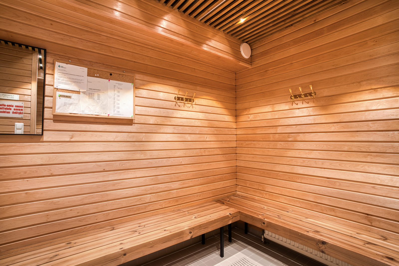 Taloyhtiön tiloista löytyy upeasti uudistetut saunatilat isolla uima-altaalla. Tilat ovat todella kauniit ja raikkaat. Tänne kelpaa tulla saunomaan ja vaikka aamu-uinnille.