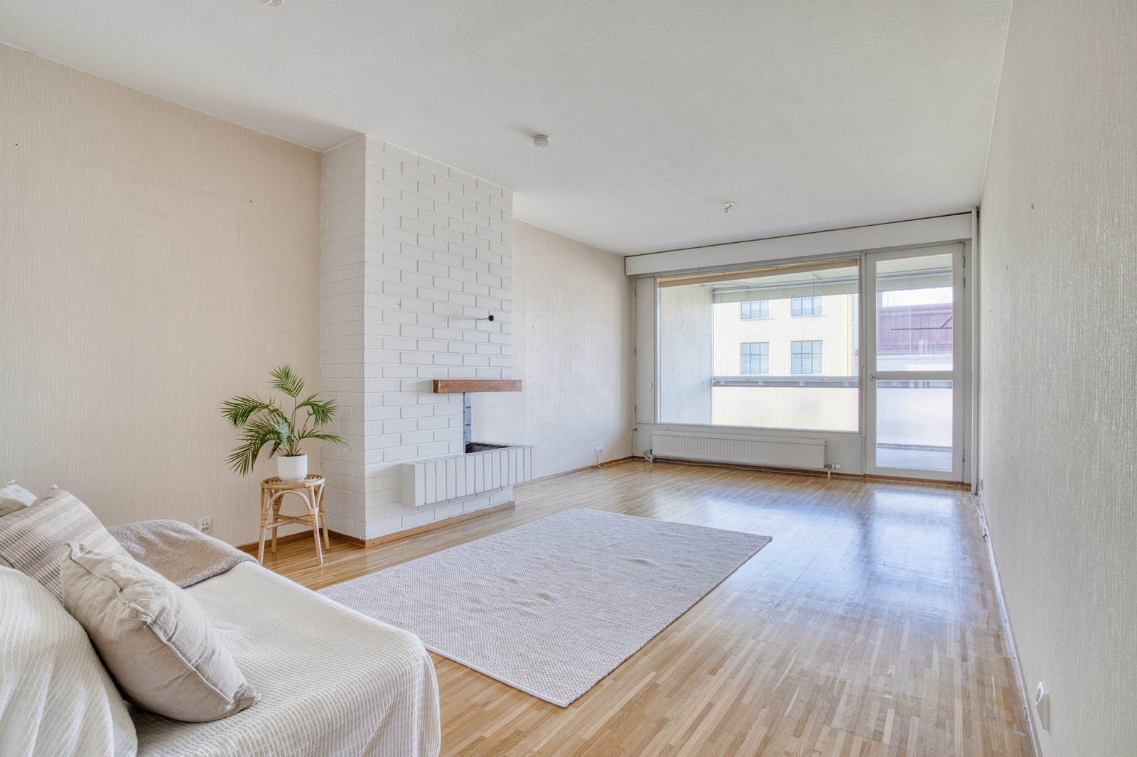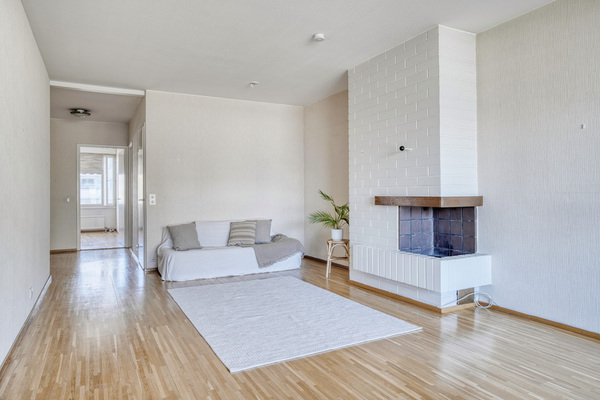 Valoisa ja tilava olohuone, jota on ilo sisustaa. Isot ikkunat tuovat luonnonvalon kauniisti sisään. Olohuoneesta on käynti kodin lasitetulle parvekkeelle. Olohuoneessa on myös takka, joka on mahdollista ottaa käyttöön pienten muutosten avulla.
