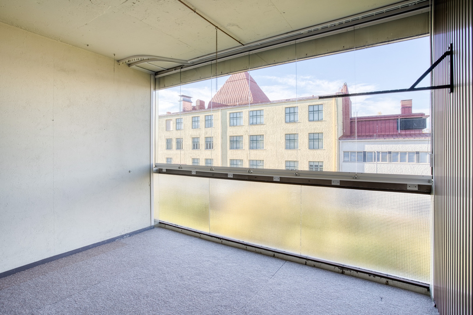 Olohuoneesta on käynti kodin lasitetulle parvekkeelle. Täällä on ihanaa poltella kynttilöitä ja katsella taivaan tummumista iltaa kohti.