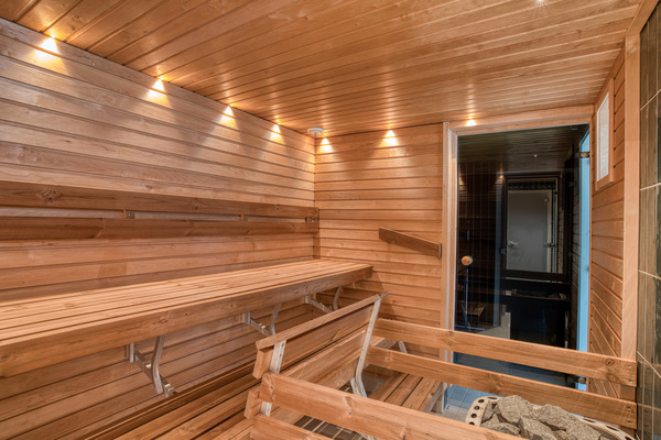 Taloyhtiön alakerran tiloissa upeat saunatilat uima-altaineen. Täällä on arjen luksusta.