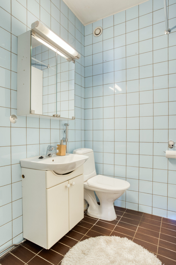 Kylpyhuone sekä erillinen wc sijaitsevat eteisen yhteydessä.
