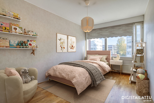 Kodissa on kolme hyvänkokoista makuuhuonetta. Valoisia ja hyvänkokoisia huoneita, jotka soveltuvat moneen eri käyttötarpeeseen.
