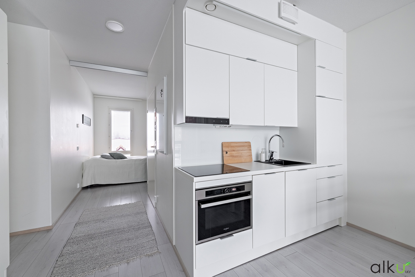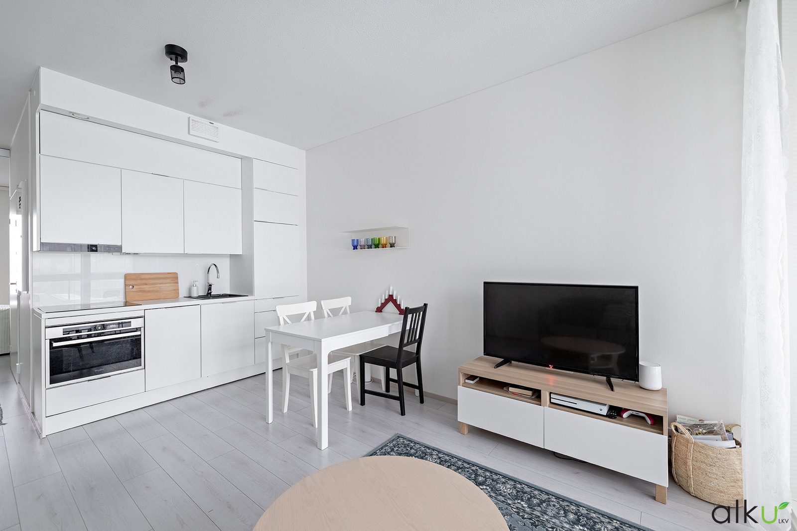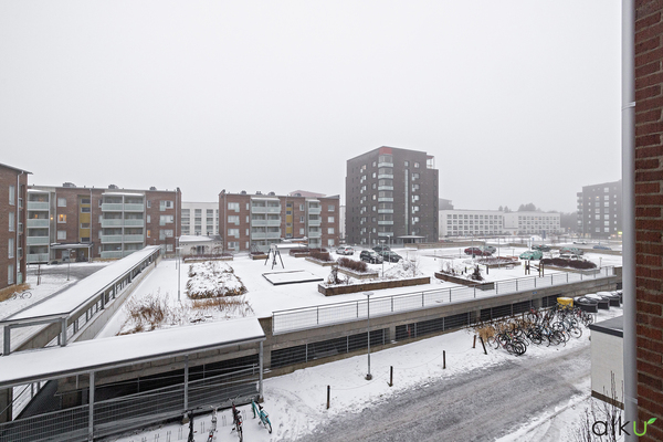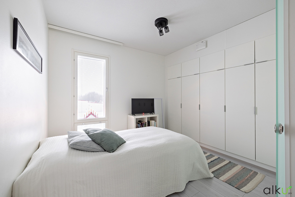 Koti sijaitsee kolmannessa kerroksessa. Näkymät avautuvat kahteen ilmansuuntaan, jonka ansiosta tässä kodissa riittää luonnonvaloa. Yhtenäinen olohuone ja keittiö muodostavat avaran ja viihtyisän oleskelutilan. Tyylikkäässä keittiössä on vaaleat kalusteet ja integroidut kodinkoneet viimeistelevät siistin ja yhtenäisen ilmeen. Lasitettu huoneiston levyinen parveke tarjoaa lisäneliöitä varhaisesta keväästä pitkälle syksyyn.