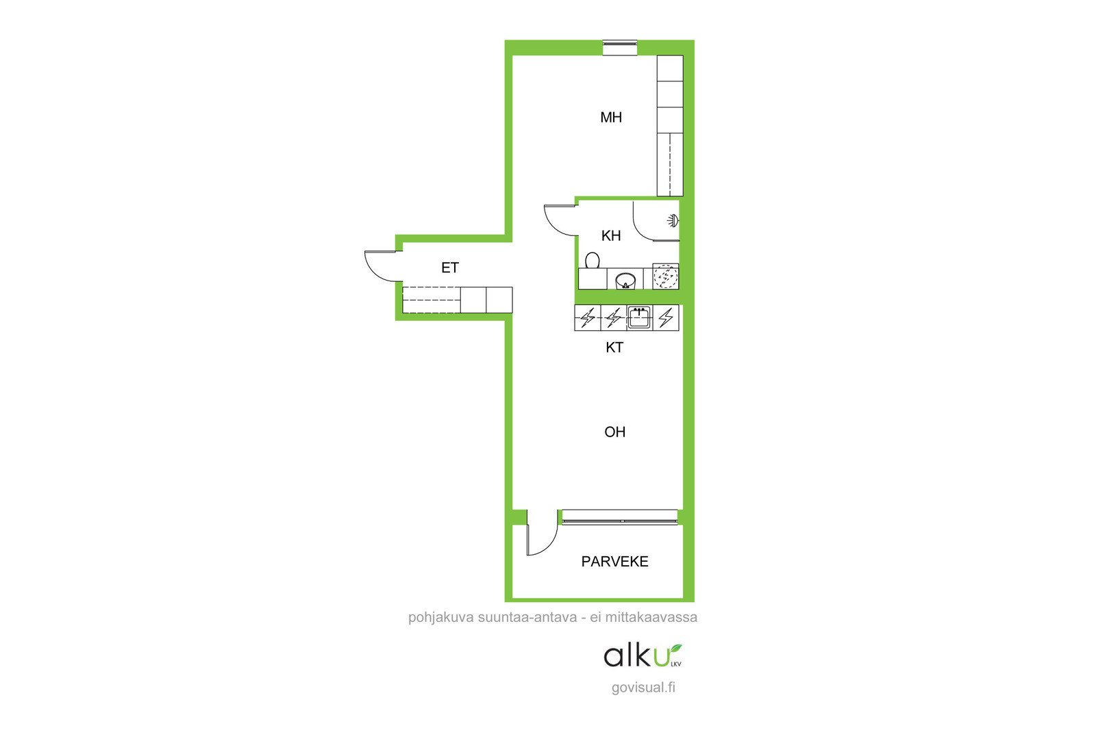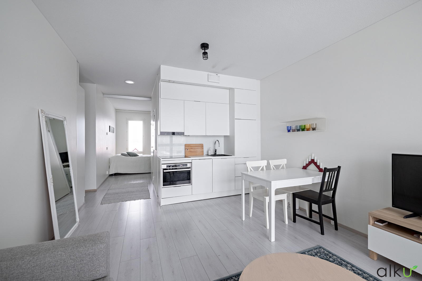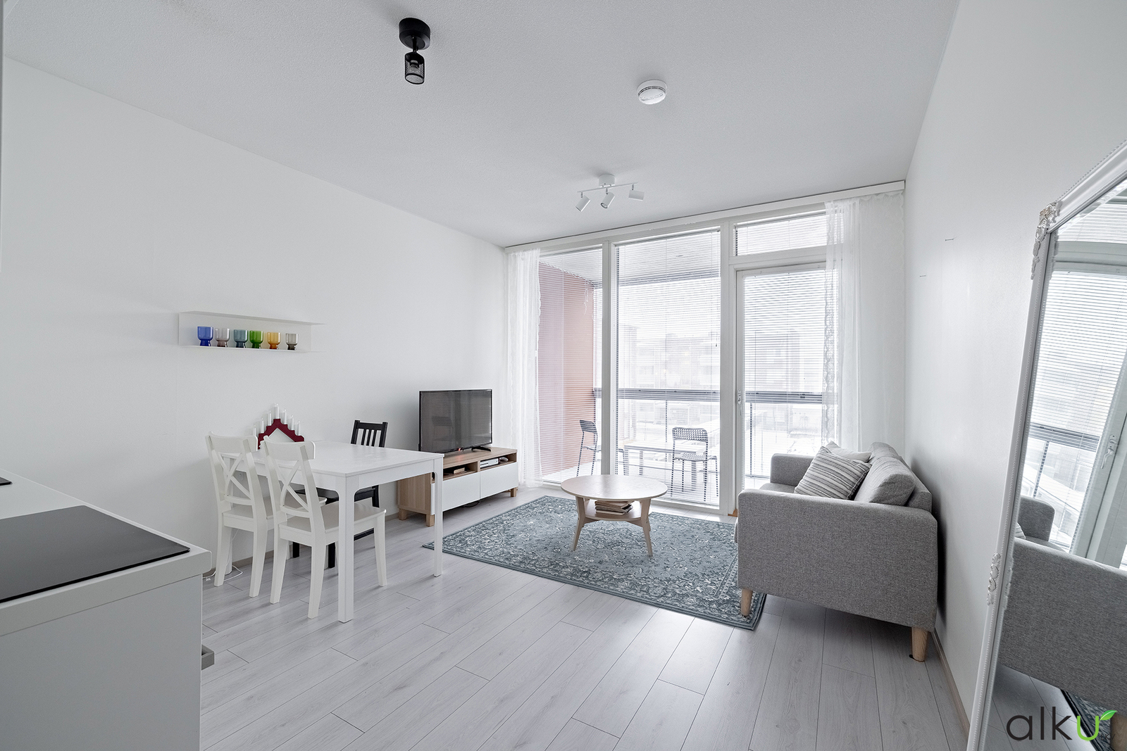 Koti sijaitsee kolmannessa kerroksessa. Näkymät avautuvat kahteen ilmansuuntaan, jonka ansiosta tässä kodissa riittää luonnonvaloa. Yhtenäinen olohuone ja keittiö muodostavat avaran ja viihtyisän oleskelutilan. Tyylikkäässä keittiössä on vaaleat kalusteet ja integroidut kodinkoneet viimeistelevät siistin ja yhtenäisen ilmeen. Lasitettu huoneiston levyinen parveke tarjoaa lisäneliöitä varhaisesta keväästä pitkälle syksyyn.