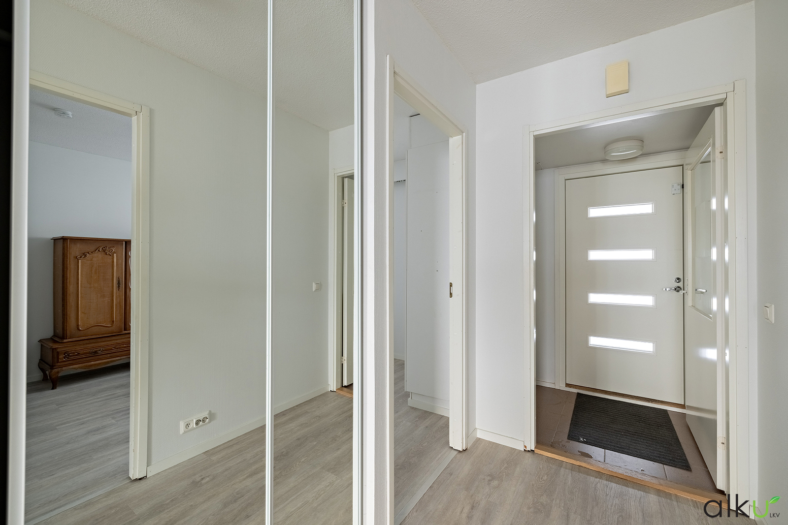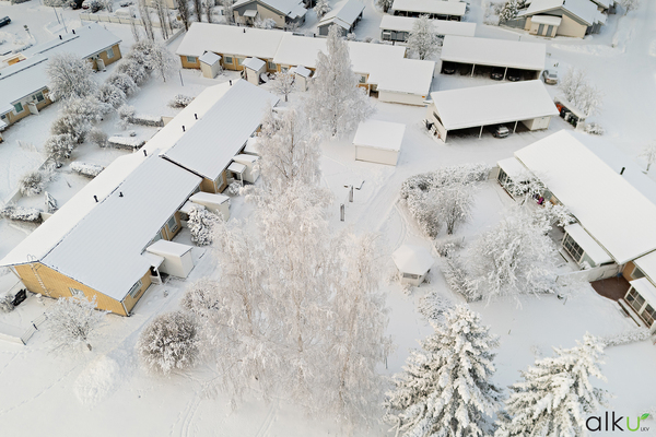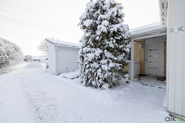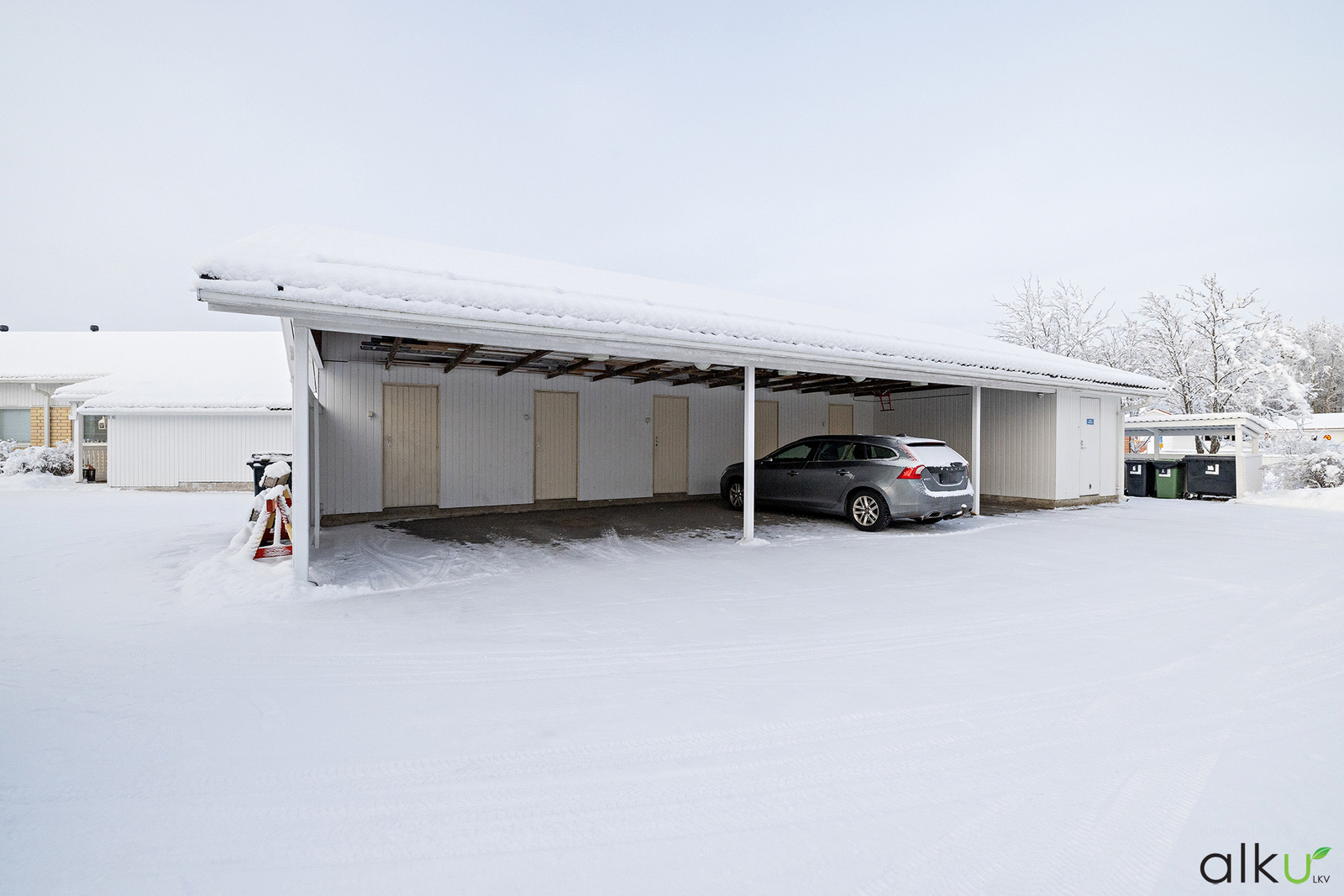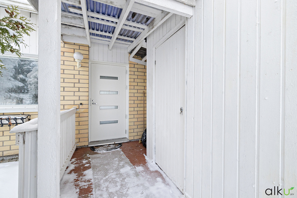 Autolle on autokatospaikka ja asunnon yhteydessä sisääntulon vierellä erillinen varastotila.