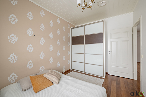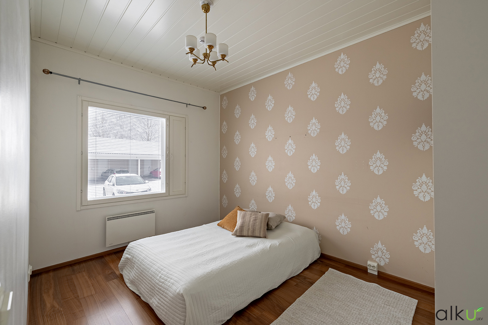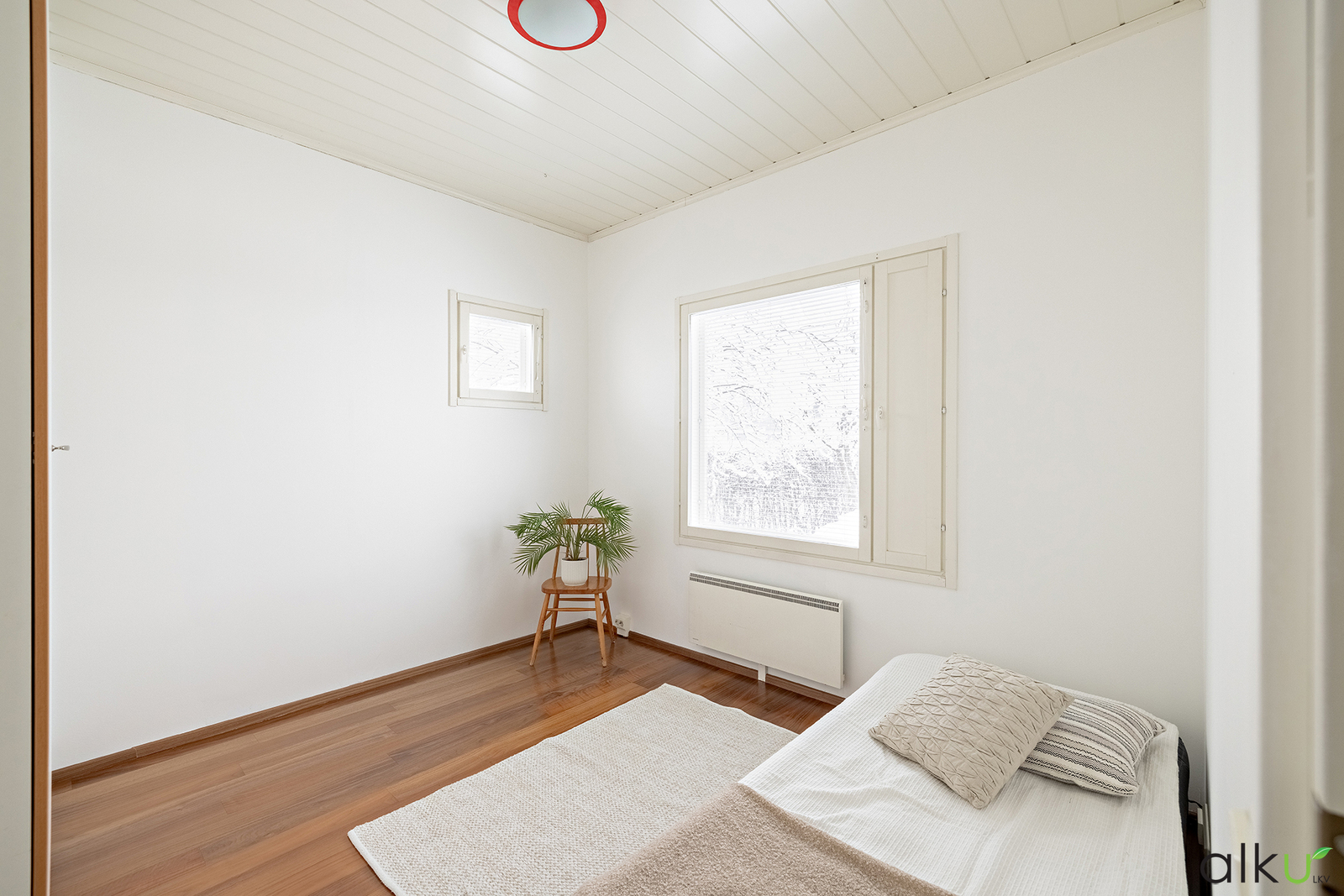 Makuuhuoneita on kodissa kaksi. Tilava päämakuuhuone on hyvänmallinen ja mahdollista kalustaa usealla eri tavalla. Kodin molemmat makuuhuoneet sijaitsee heti ulko-oven lähettyvillä. Kummassakin makuuhuoneessa on paljon kaappitilaa.