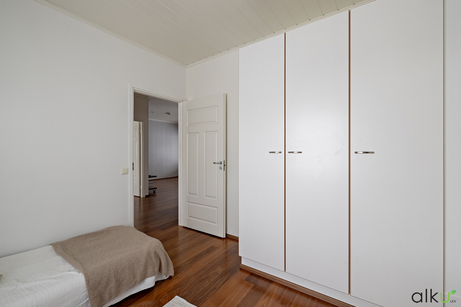 Kaksi makuuhuonetta, joissa molemmissa kaapistot säilytykseen. Makuuhuoneen lattiat ovat kovapuuta.