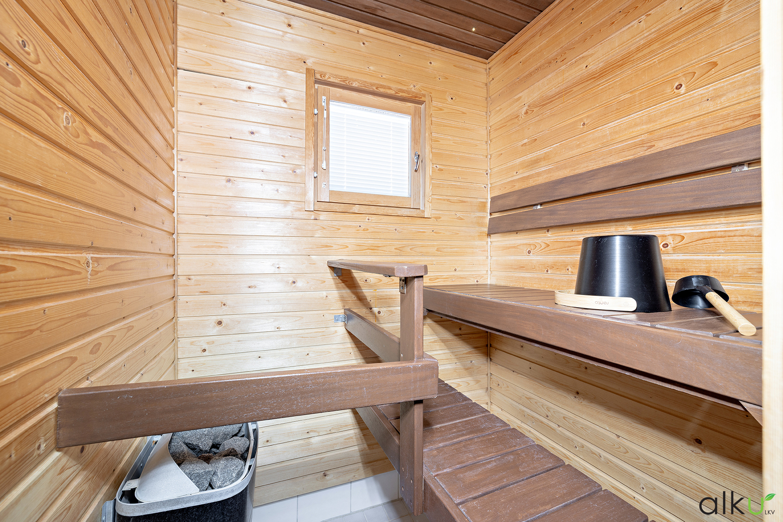 Tunnelmallinen sauna kutsuu lämpimiin löylyihin.