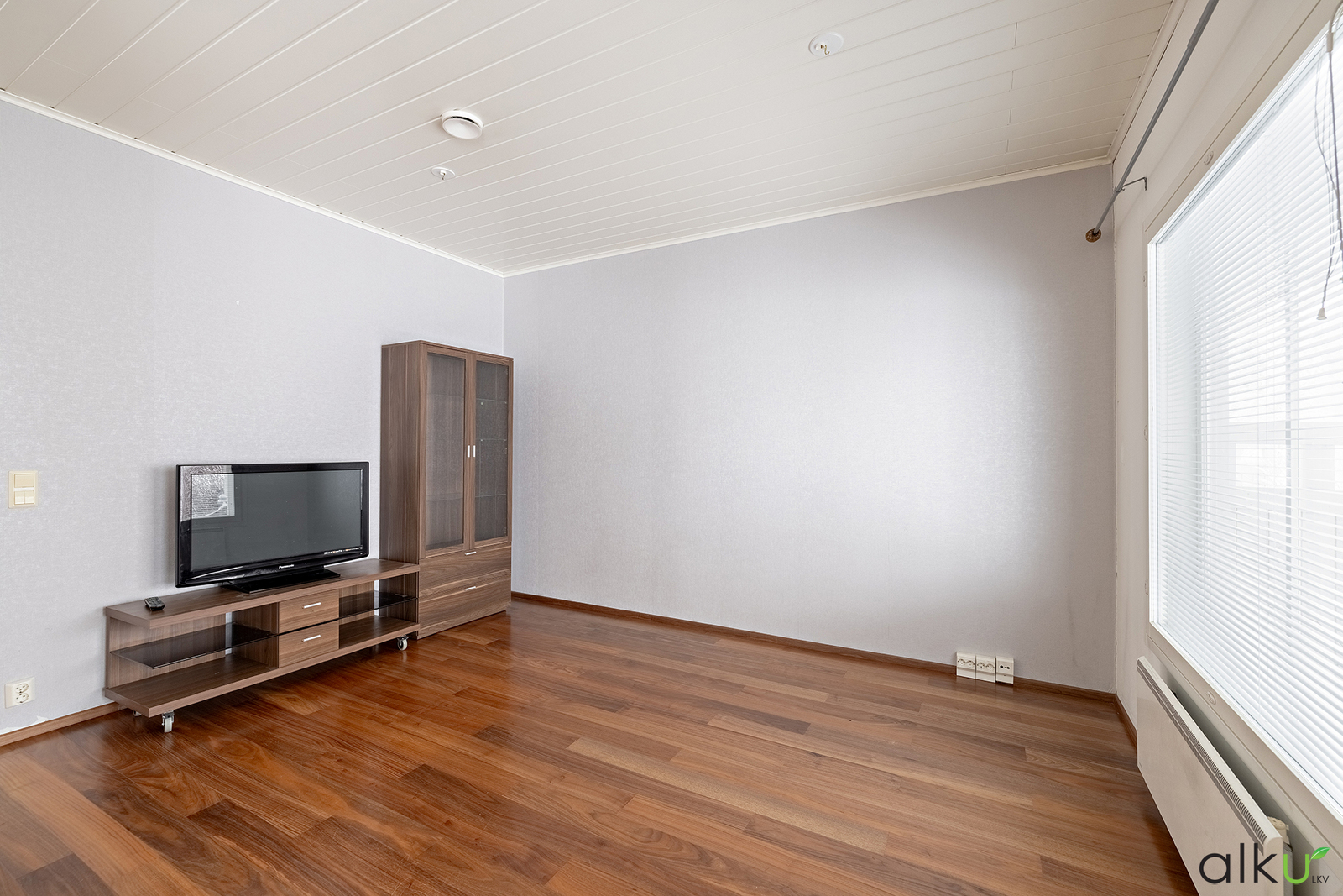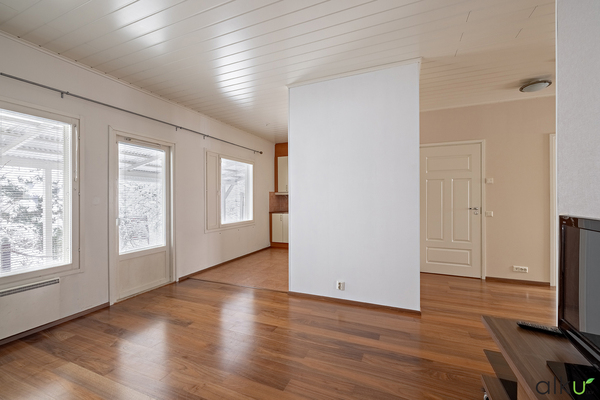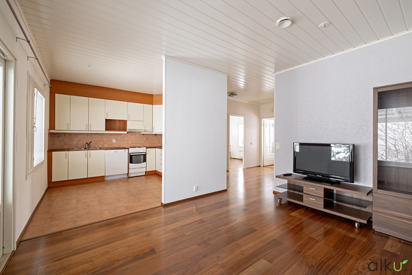 Ihastuttava olohuone on valoisa ja tilava. Tätä tilaa on ilo sisustaa. Olohuone yhdistyy keittiöön tehden tiloista toimivat. Olohuoneesta on käynti kodin terassille sekä pihamaalle. Olohuoneen lattiat kovapuuta.