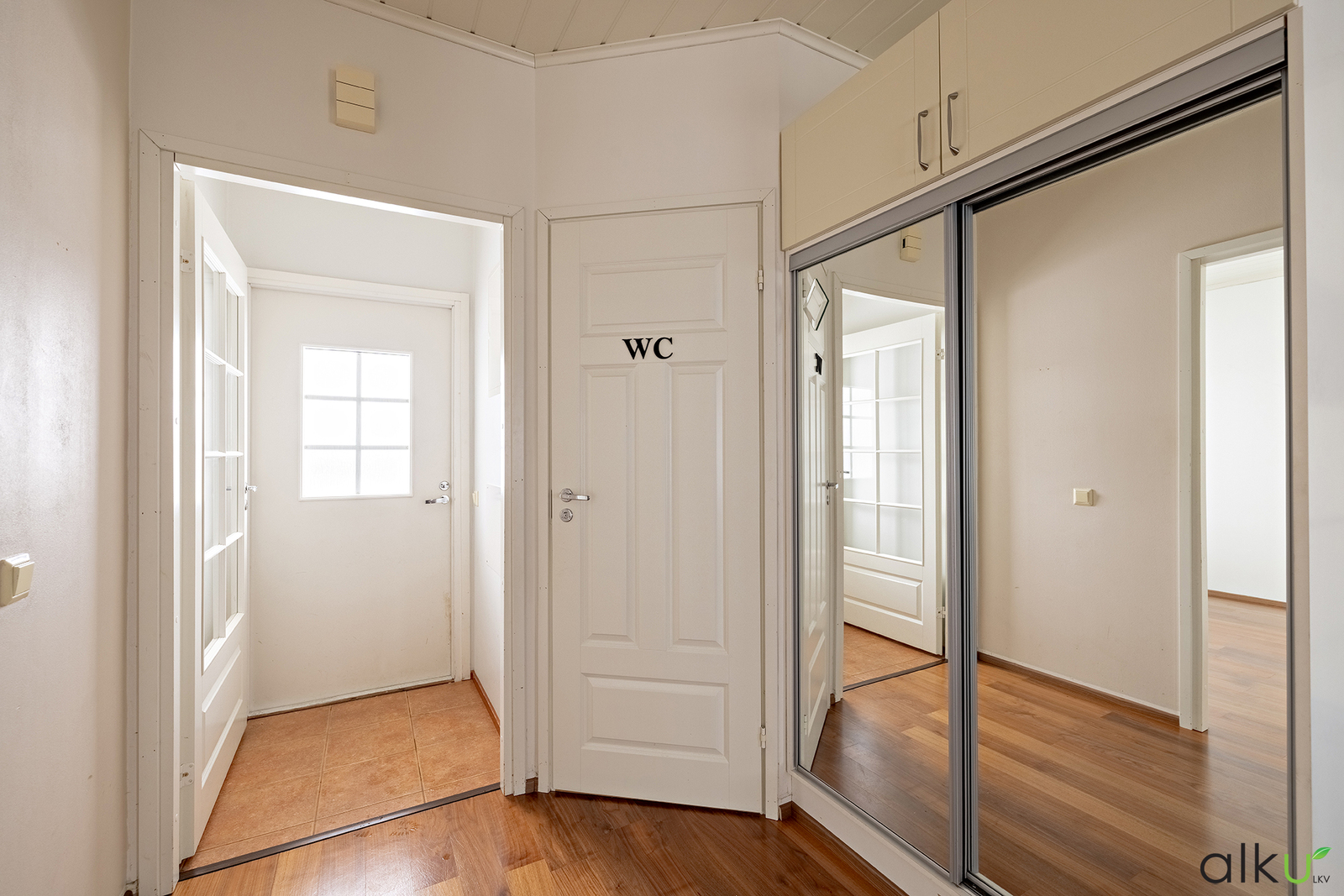 Eteisen yhteydessä on hyvänkokoinen erillinen wc. Toinen wc kylpytilojen yhteydessä.