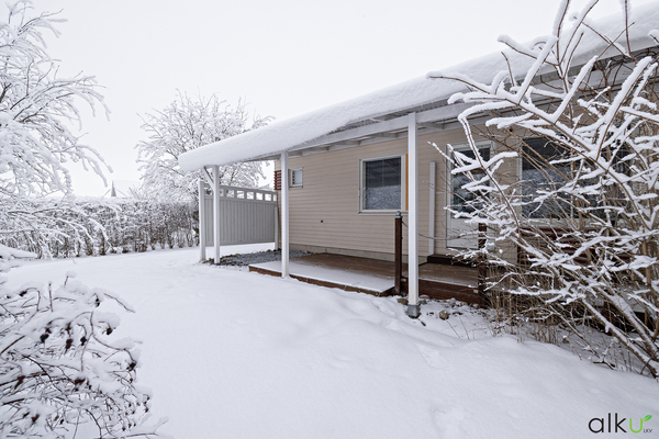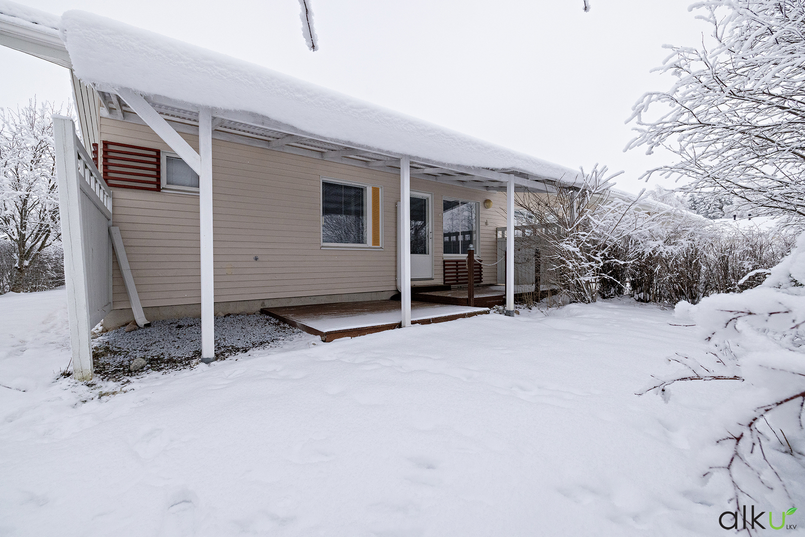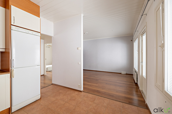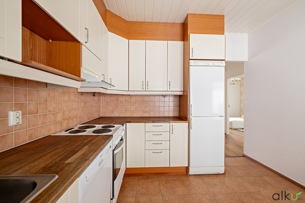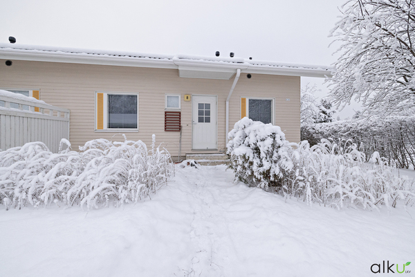 Hyväpohjainen rivitalon päätykolmio, jossa kaikki tilat ovat yhdessä tasossa.