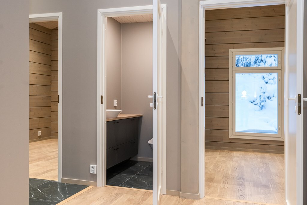 Makuuhuoneet ja wc ovat kätevästi vieretysten.