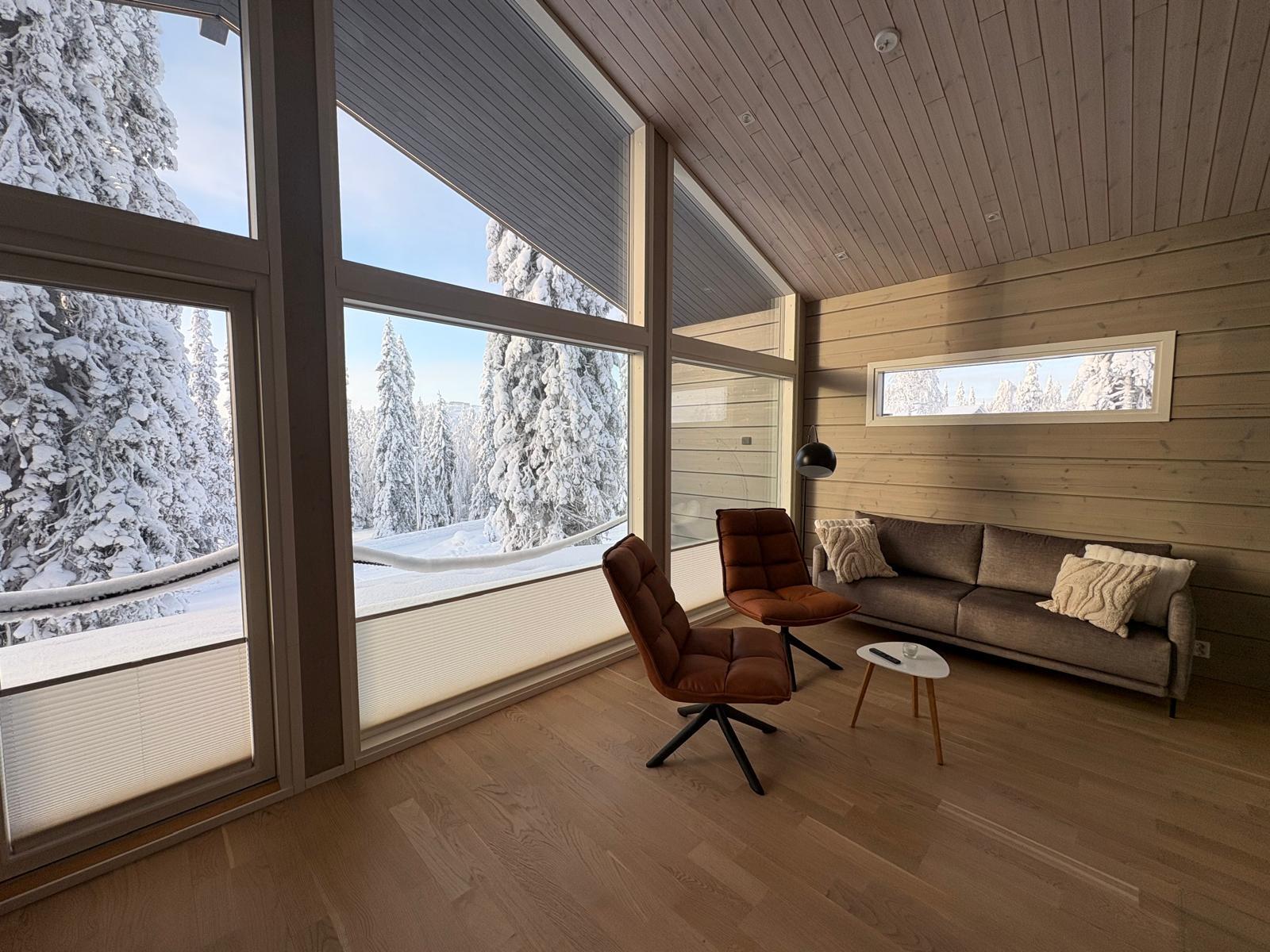 Kaunis, avara, isoilla ikkunoilla varustettu ympärivuoden asuttava edulliset asumiskustannukset omaava huvila luo täydelliset puitteet lomailuun mihin aikaan vuodesta vain. Lähimmät rinteet ja palvelut ovat noin 1-1,5km päässä, sinne hurauttaa autolla muutamassa minuutissa. Hiihto- ja pyöräilyreitit ovat kätevästi vain muutaman sadan metrin päässä.